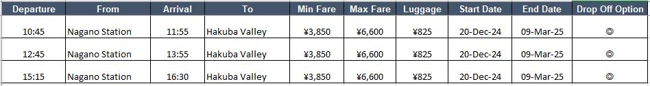Nagano Station to Hakuba ski resort shuttle schedule
