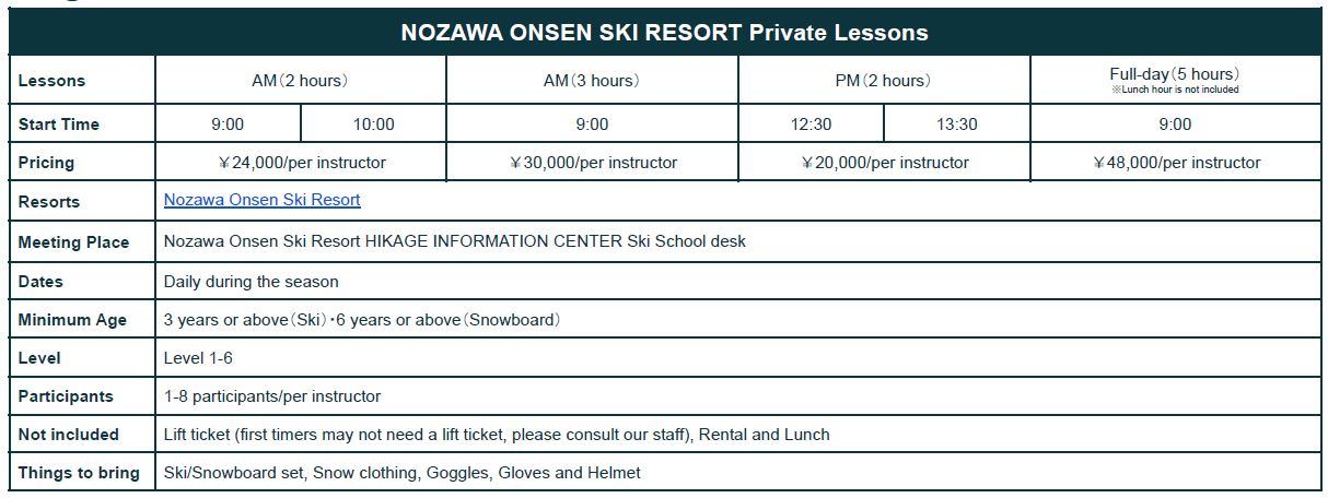 nagano ski school prices